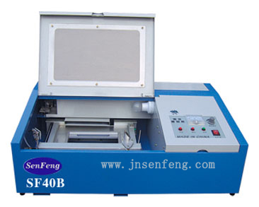 SF40B激光雕刻机技术参数: 雕刻幅面 200x240mm 激光功率 40W 外型尺寸 350x500x800mm 雕刻速度 100-300mm/min 分辨精度 0.0125mm 最小文字 字母 0.8mm 汉字 2mm 支持图像格式 BMP、PLT 整机功率 200W