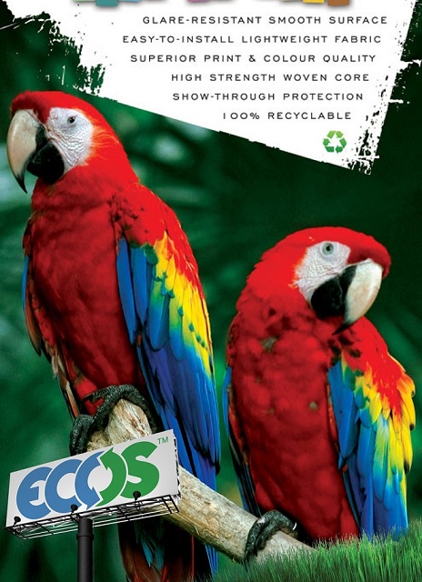 ECOS™宽幅数码喷绘灯箱布是加拿大英特瑞普(INTERWRAP)集团最新研发的、环保耐用的广告底材,其采用高强度聚乙烯编织布做为基层和双面聚乙烯覆膜的独特生产工艺加工而成。其具有柔韧性好、色彩还原度高、质轻以及便于分割、拼接、托运、安装等特性,特别适用于大型彩色喷绘、户外广告,并因此得到惠普的广泛认可和推崇。